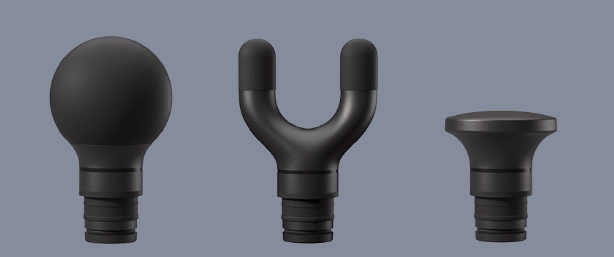 Массажные головки сделаны из качественного силикона, поэтому подходят в том числе и для чувствительной кожи. А благодаря амортизации для защиты мышц от повреждения процесс будет безопасным. Шариковая головка подходит для групп крупных мышц, например плеч, спины, бедер. U-образная головка подходит для нижней части спины, позвоночника и голеней. Плоская головка походит для расслабляющего массажа.